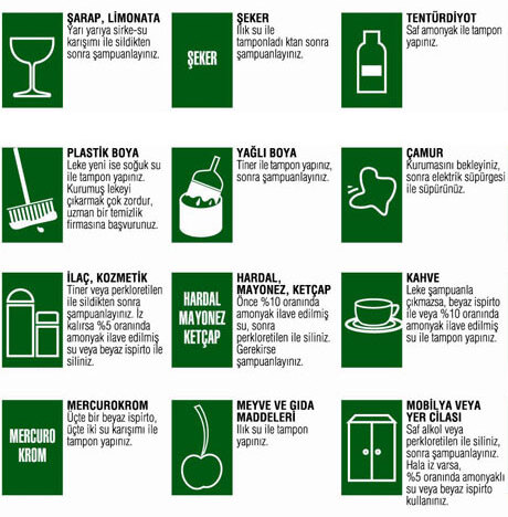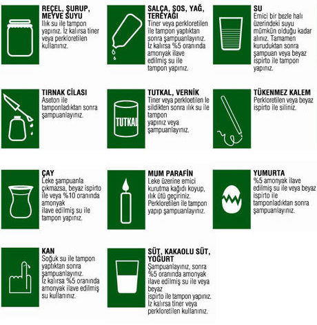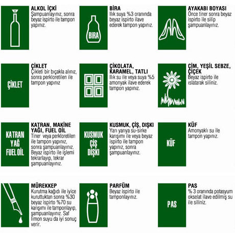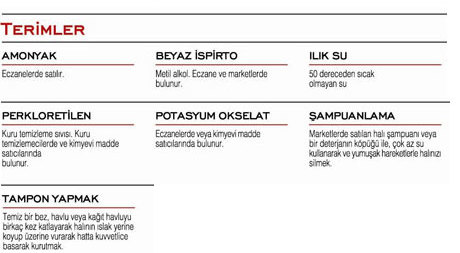 8 – Leke çıkarma işlemi,leke çıkarmada kullanılacak kimyevi bir madde ile öncelikle halının görünmeyen bir yerinde denenmelidir.